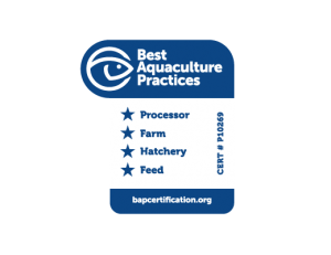 Production is certified by BAP (Best Aquaculture Practices).