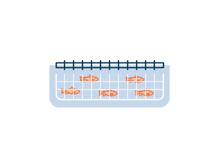 Grow out begins by stocking smolts in ocean pins, where fish will remain for 14 to 17 months until they reach an average weight of 5 kilograms.