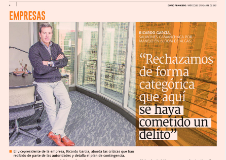 -Yo pienso que en general la autoridad ha trabajado bien, exigiendo a la industria que tenga planes de contingencia, revisándolos y monitoreándolos. Me parece que la autoridad en ese aspecto ha hecho su trabajo, no tengo nada que criticarle. Lo que sí rechazo categóricamente es que nosotros hayamos cometido un delito y, por lo tanto, rechazo el que se nos acuse de un delito como aquel que ha sido anunciado por la autoridad marítima y por Sernapesca.